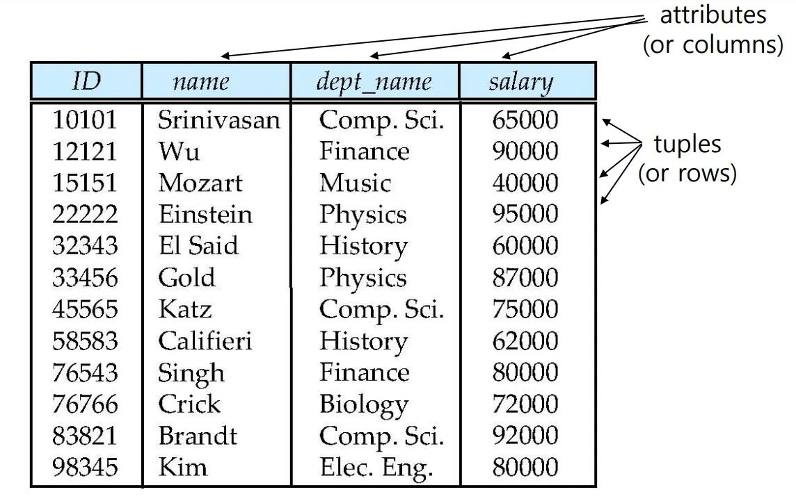 데이터베이스는 복수의 Relation으로 이루어진다.
