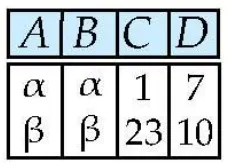 아래 그림에서 r과 s의 공통 column은 B, D이다.