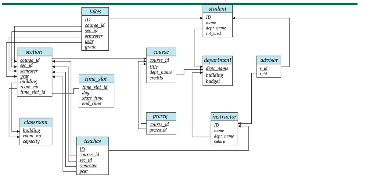 EX ) 대학 DB는 다음과 같은 Relation으로 이루어진다.