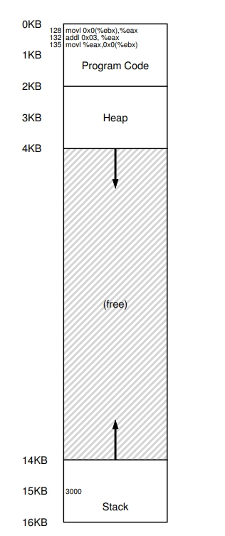 ํ๋ก๊ทธ๋จ ๊ด์ ์์ ์ฃผ์๊ณต๊ฐ์ ์ฃผ์ 0๋ถํฐ ์ต๋ 16KB๊น์ง๋ค. ํ๋ก๊ทธ๋จ์ด ์์ฑํ๋ ๋ชจ๋ ๋ฉ๋ชจ๋ฆฌ ์ฐธ์กฐ๋ ์ด ๋ฒ์ ๋ด์ ์์ด์ผ ํ๋ค.
