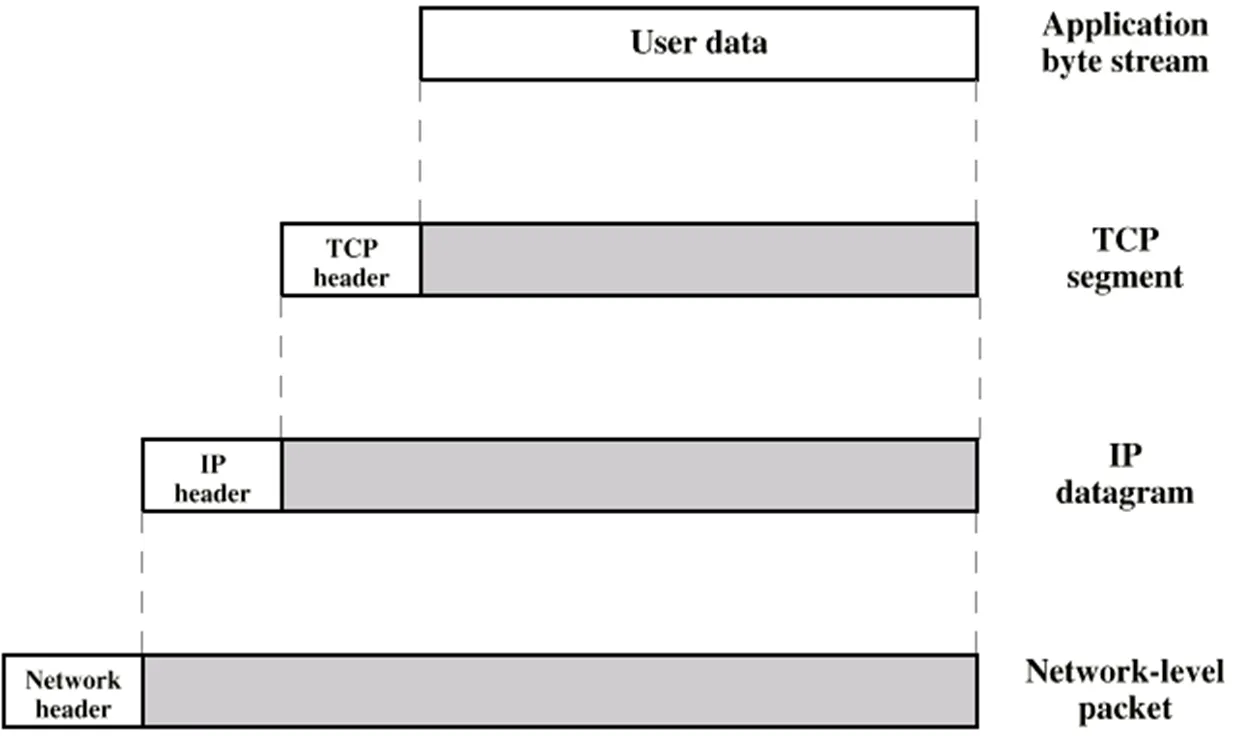 TCP ์ธ๊ทธ๋จผํธ๊ฐ ํด๋น ๋ ์ด์ด์์ ๊ธฐ๋ณธ ํ๋กํ ์ฝ ์ ๋ ์ทจ๊ธ๋๋ค.(๋ฐ์ดํธ ์คํธ๋ฆผ + TCP ํค๋)