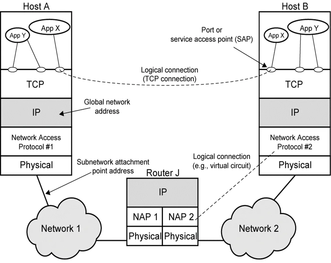 Application~Transport๋ฅผ Logical Layer, Network Access~Physical์ Physical ๋ ์ด์ด๋ผ๊ณ ํ๋ฉด, ์ธํฐ๋ท ๋ ์ด์ด๋ ๊ทธ ์ฌ์ด๋ฅผ ์ด์ด์ฃผ๋ ์ค๊ฐ์์ญํ ์ ํ๋ค.(์ผ์ข