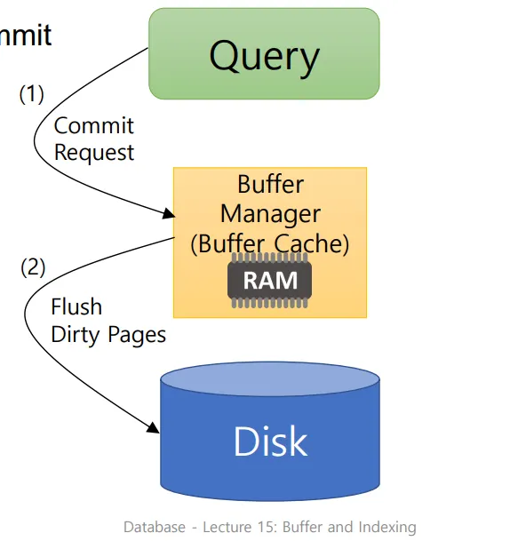 특정 데이터베이스 페이지가 연산이 다 끝날 경우, 일단 flush를 진행한다.