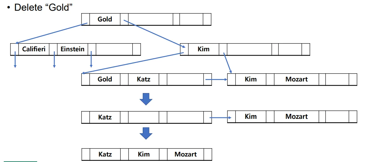 Singh또는 Wu만 삭제했을 때는 데이터가 n/2 이하로 떨어지지 않았으므로 트리는 그대로 유지된다.