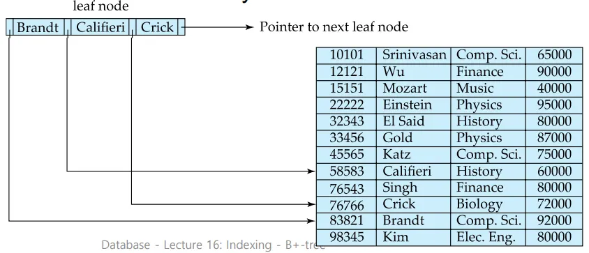 search key는 오름차순으로 정렬된다. (일단 duplicates는 없다는 가정하에)