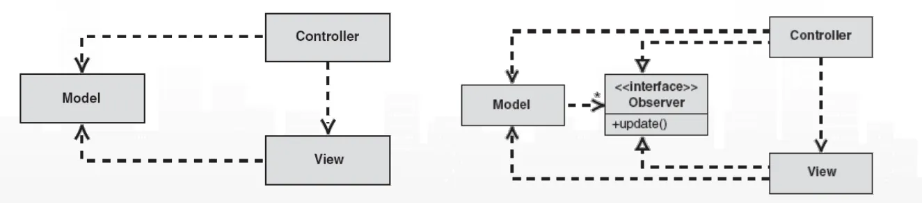 모델이 별도의 Observer를 두어 Controller와 View의 갱신된 내용을 관리하는 형식이다.