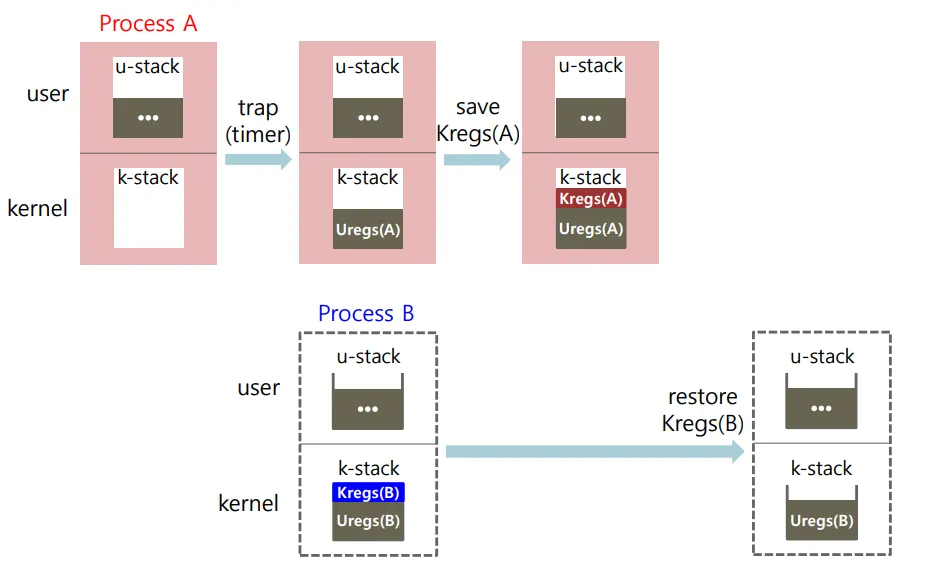 OS๊ฐ ํ๋ก์ธ์ค๋ฅผ ์ค๋จ์ํค๊ณ ๋ค๋ฅธ ํ๋ก์ธ์ค๋ก ์ด๋ป๊ฒ ์ ํ์ํฌ๊ฒ์ธ๊ฐ?