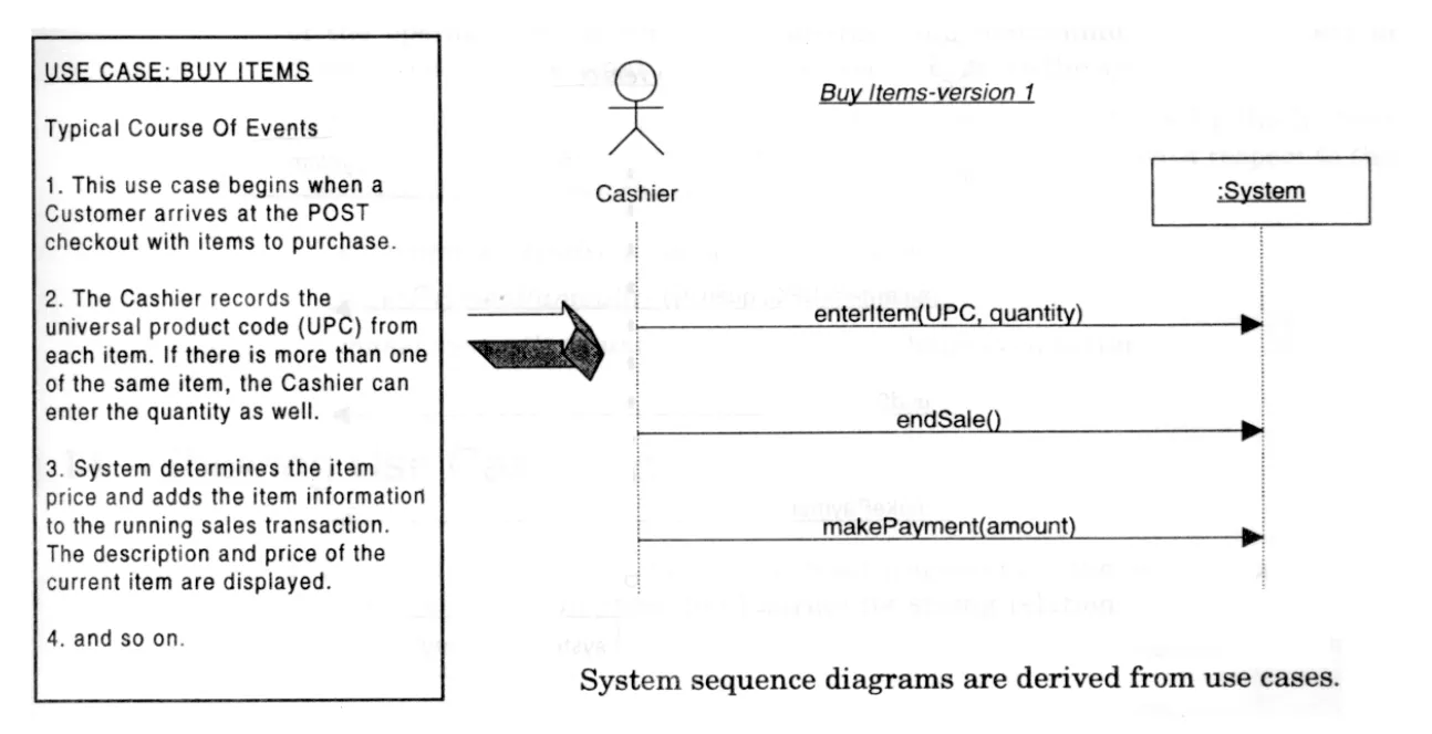 시스템의 시퀀스 다이어그램으로부터 시스템 오퍼레이션을 뽑아내라.
