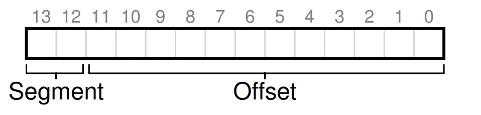 Segment = (VirtualAddress & SEG_MASK) >> SEG_SHIFT //14 bit VA์ค ์์ 2bit ์ถ์ถ