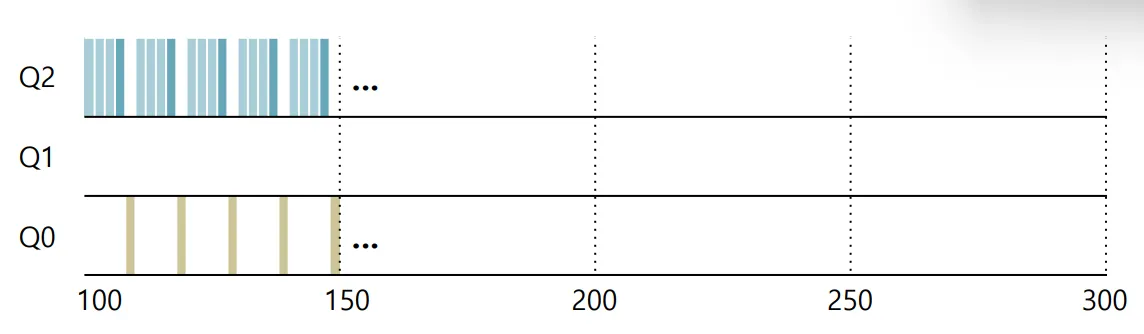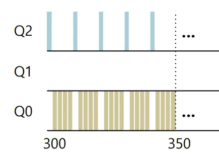 ํ๋ค. 10msec ํ์์ฌ๋ผ์ด์ค๋ฅผ ๋ชจ๋ ์์งํ์ผ๋ฏ๋ก, Q1์ผ๋ก ๊ฐ๋ฑ๋นํ๋ค. ๋ค์ ํ๋์ ํ์์ฌ๋ผ์ด์ค๋ฅผ ๋ชจ๋ ์์งํ ํ, Q0๋ก ์ตํ์ ํ๊น์ง ๊ฐ๋ฑ๋นํ ๋ค, ์ดํ์๋ ๊ณ์ Q0์ ๋จธ๋ฌด๋ฅด๊ฒ ๋๋ค.