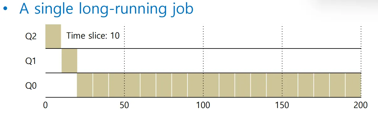 ๊ธด ์๊ฐ๋์ CPU๋ฅผ ์ง์ค์ ์ผ๋ก ๊ฐ๊ตฌ๋ฉด MLFQ๋ ์ฐ์ ์์๋ฅผ ๋ฎ์ถ๋ค.